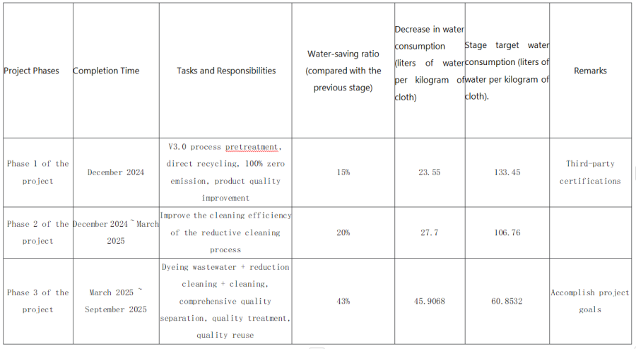It will be carried out in three phases. The water consumption will be optimized from 157 liters of water per kilogram of cloth in the current process to 61 liters of water per kilogram of cloth.