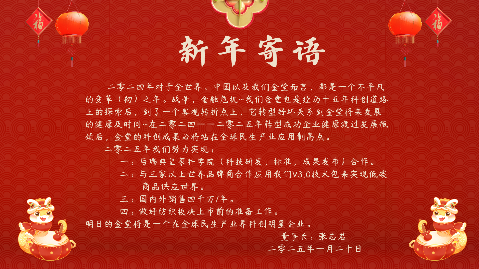令和 7 年、乙巳おつし巳年みねんにおける金堂きんどうの新年メッセージ