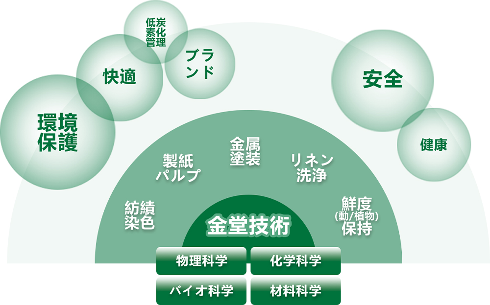 植物繊維捺染におけるピンホール発生や強度低下低減などの研究開発からスタートし、上海金堂は獨自技術(shù)を通じて様々な新製品を開発した?,F(xiàn)在、アパレル、建材、金屬表面処理、リネ?クリーニング、物流などの各分野で製品展開及び関連サービスを開拓している。