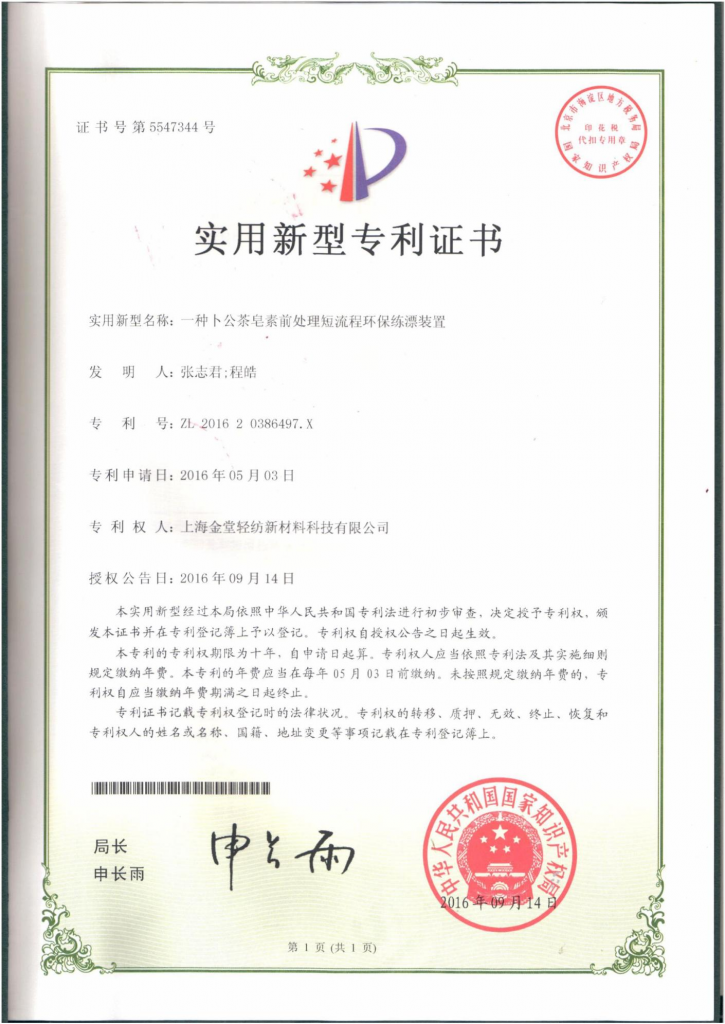 摘要:本實用新型公開了一種卜公茶皂素前處理短流程環保練漂裝置,包括煮練機、軋輥裝置、水洗機和汽蒸機,煮練機內設有第一濃度傳感器和浸軋托輥,煮練機底部設有波輪,波輪與電機傳動連接,煮練機上端與試劑箱接通;軋輥裝置位于煮練機右側,軋輥裝置下端與過濾裝置連接,過濾裝置右側設有排污口,過濾裝置下端與煮練機管道連接,連接管道中設有單向閥;水洗機位于軋輥裝置右側,水洗機上端設有補水管,水洗機內設有第二濃度傳感器,水洗機下端與回液管連接;汽蒸機位于水洗機右側,汽蒸機與蒸汽管連接。本實用新型結構簡單,自動化程度高;摒除化學助劑,練漂快速高效,環保無公害;廢水可重復利用,節能減排,值得大力推廣。