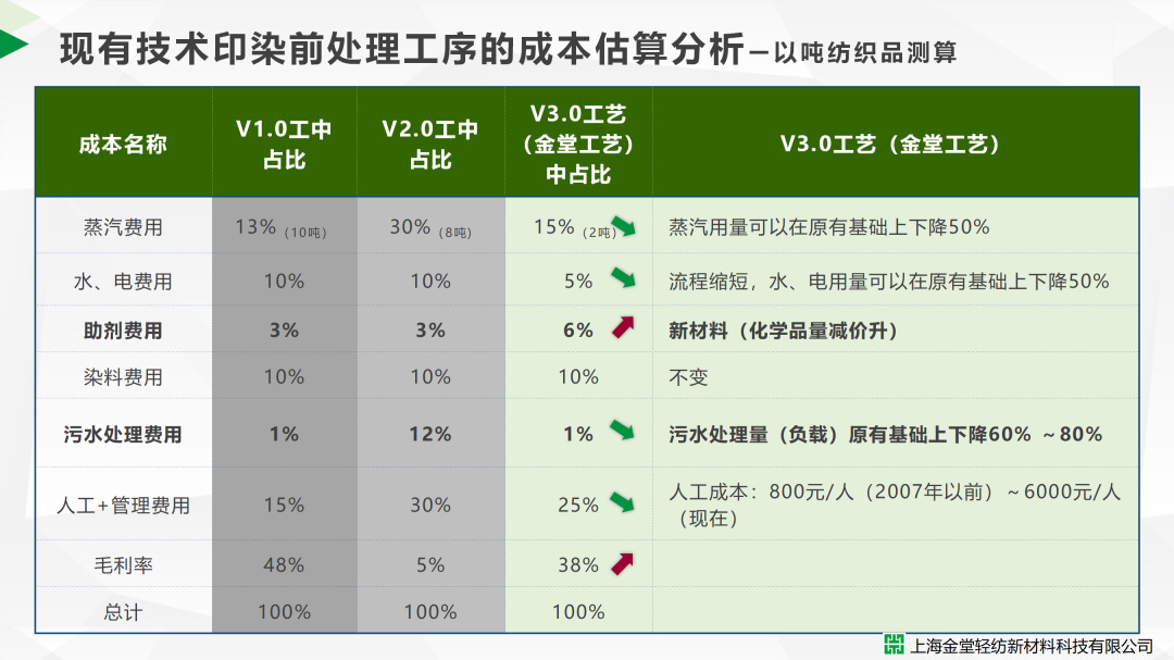 (金堂低碳前處理工藝對比)